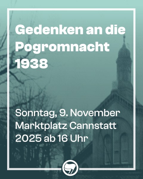 und anschließend Demonstration zum Platz der ehemaligen Synagoge – 17.00 Uhr Kranzniederlegung