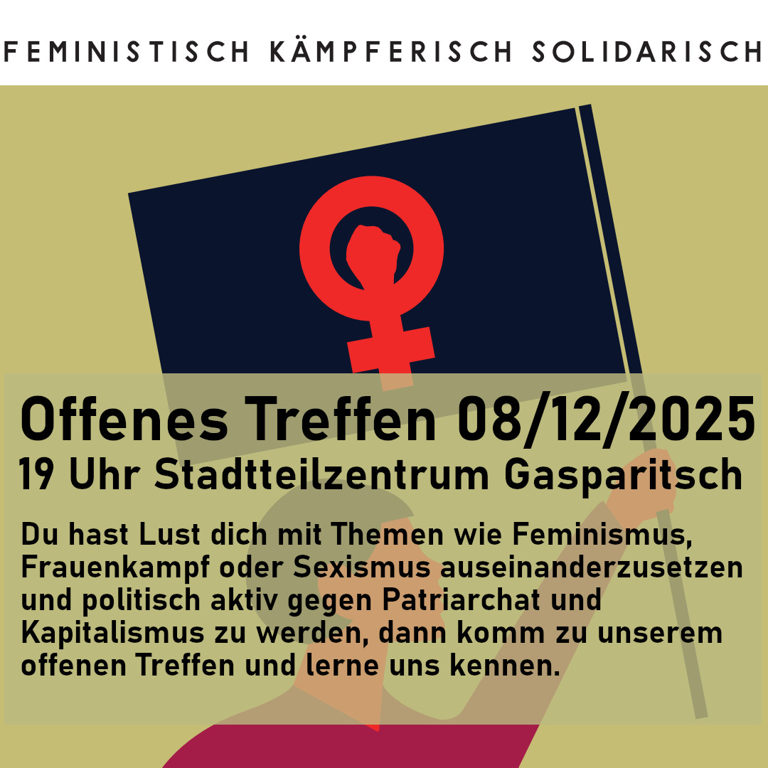 Liebe Frauen*,👋 ihr habt das Frauenkollektiv bei der ein oder anderen Aktion bereits begleitet und möchtet auch beim nächsten Mal wieder dabei sein? Ihr würdet gerne bei uns mitmachen, mitdiskutieren und mitarbeiten? Ihr habt Lust euch mit Themen wie Feminismus, Frauenkampf oder dem Kampf gegen Sexismus auseinanderzusetzen und politisch aktiv gegen Patriarchat und Kapitalismus zu werden? Oder wollt uns einfach näher kennen lernen?